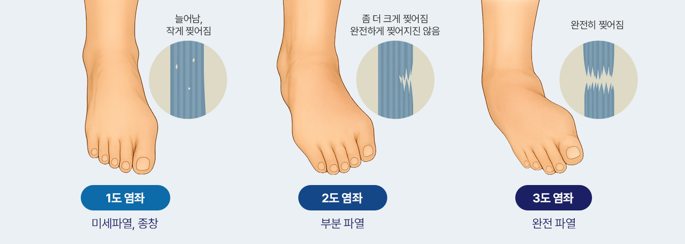 관절염으로까지 진행될 수 있어 초기에 전문 족부센터에서의 정확한 치료와 재활이 필요합니다.