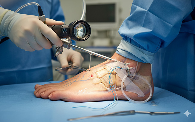 관절경적 발목 인대 봉합 수술을 진행합니다.
