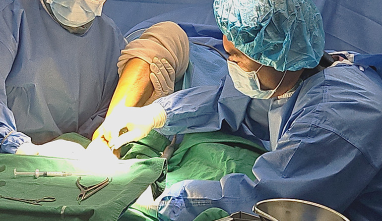 가벼운 마취 상태에서 다친 인대를 봉합하여 복원하는 것이